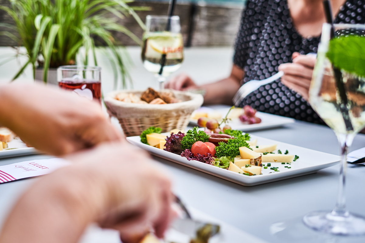 Das perfekte Ziel einer ausgiebigen (oder spritzigen) Fahrradtour für einen kühlen Drink oder einen Gaumenschmaus.